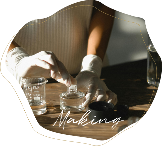 Combine selected ingredients in precise proportions to create fragrance formulas.